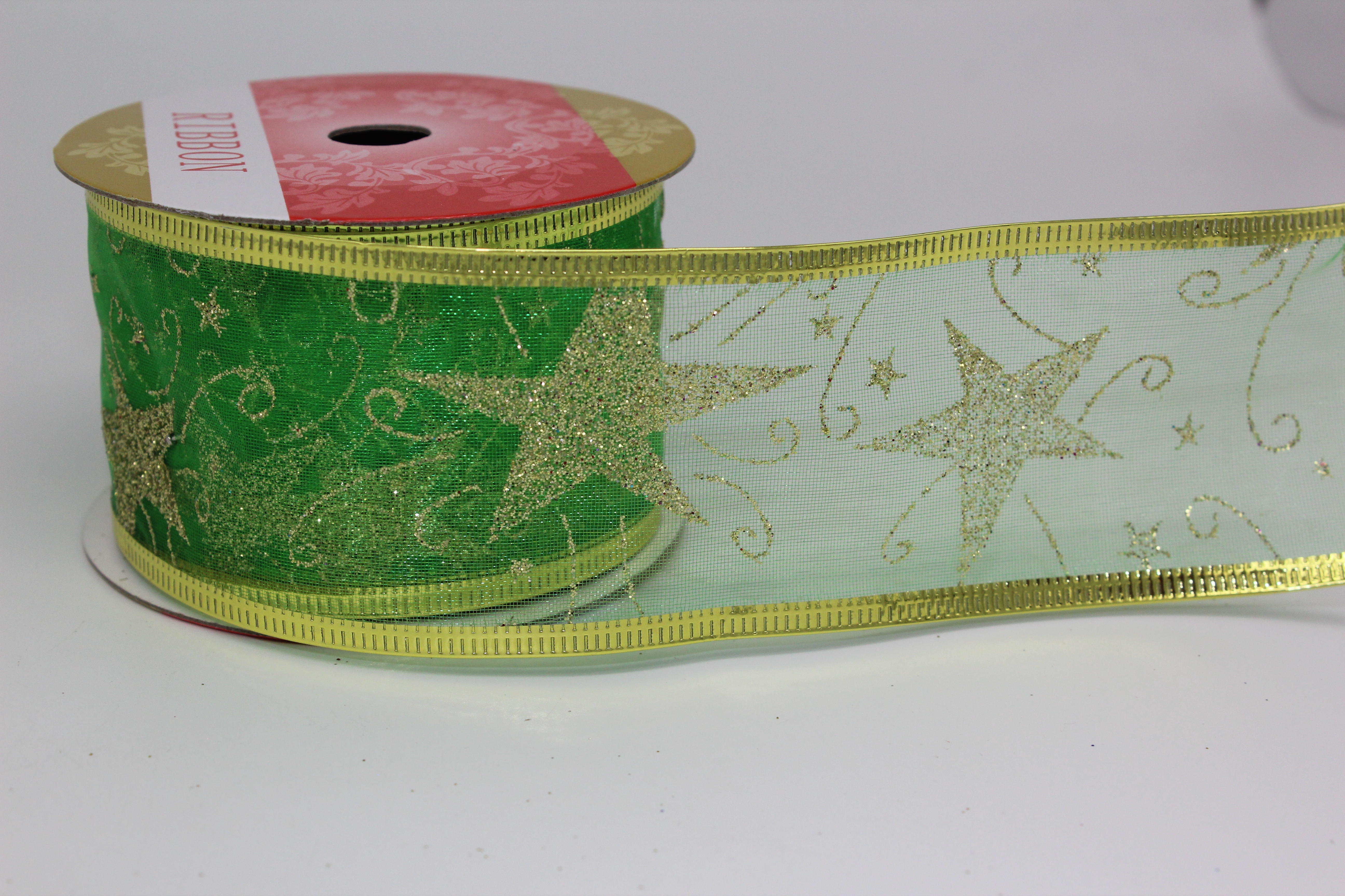 Лента декоративная с проволочным краем 2,5 см* 2,7 м красная 4/19