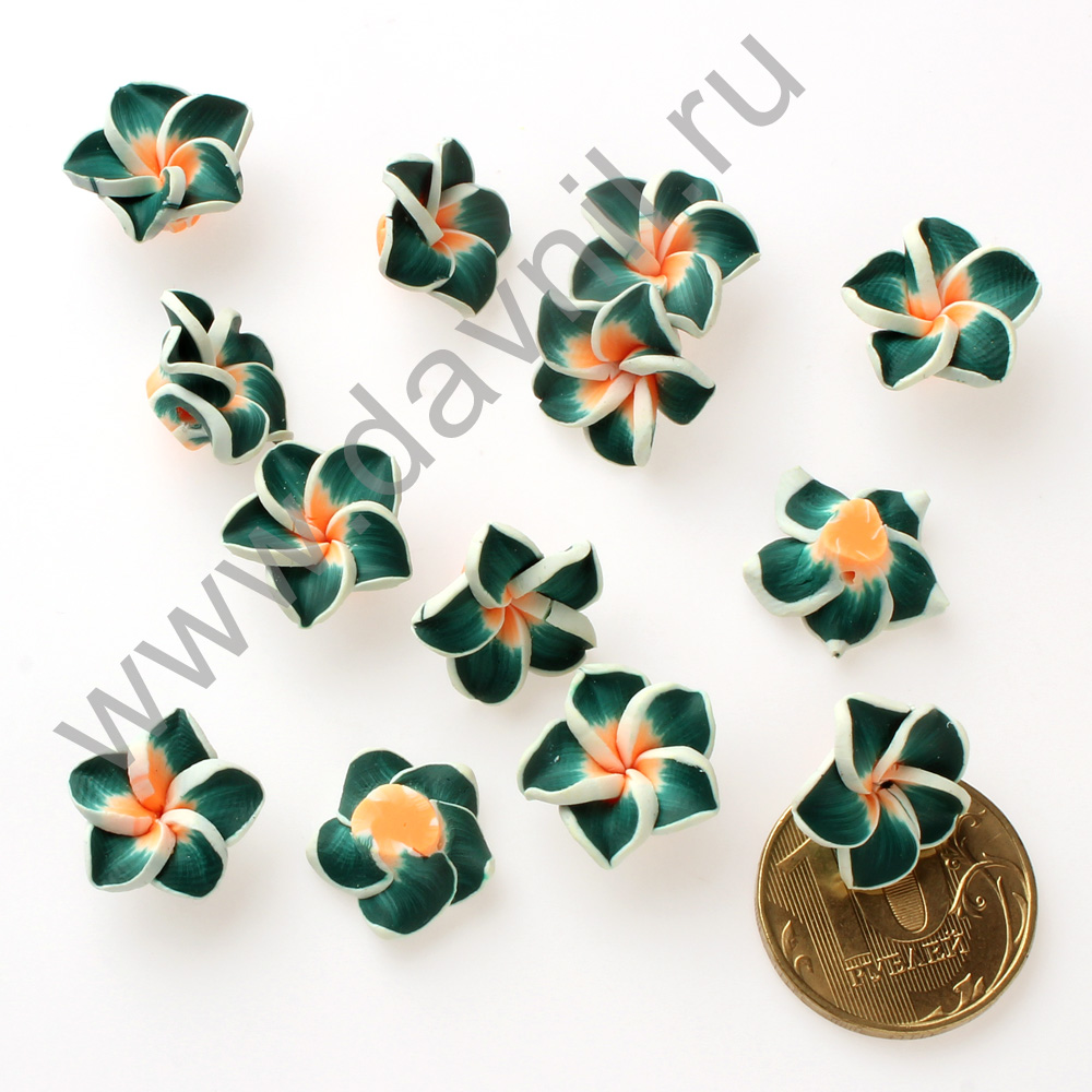Кабошон "Лилия" из каучука 2 см тёмно- зелёный 20 шт