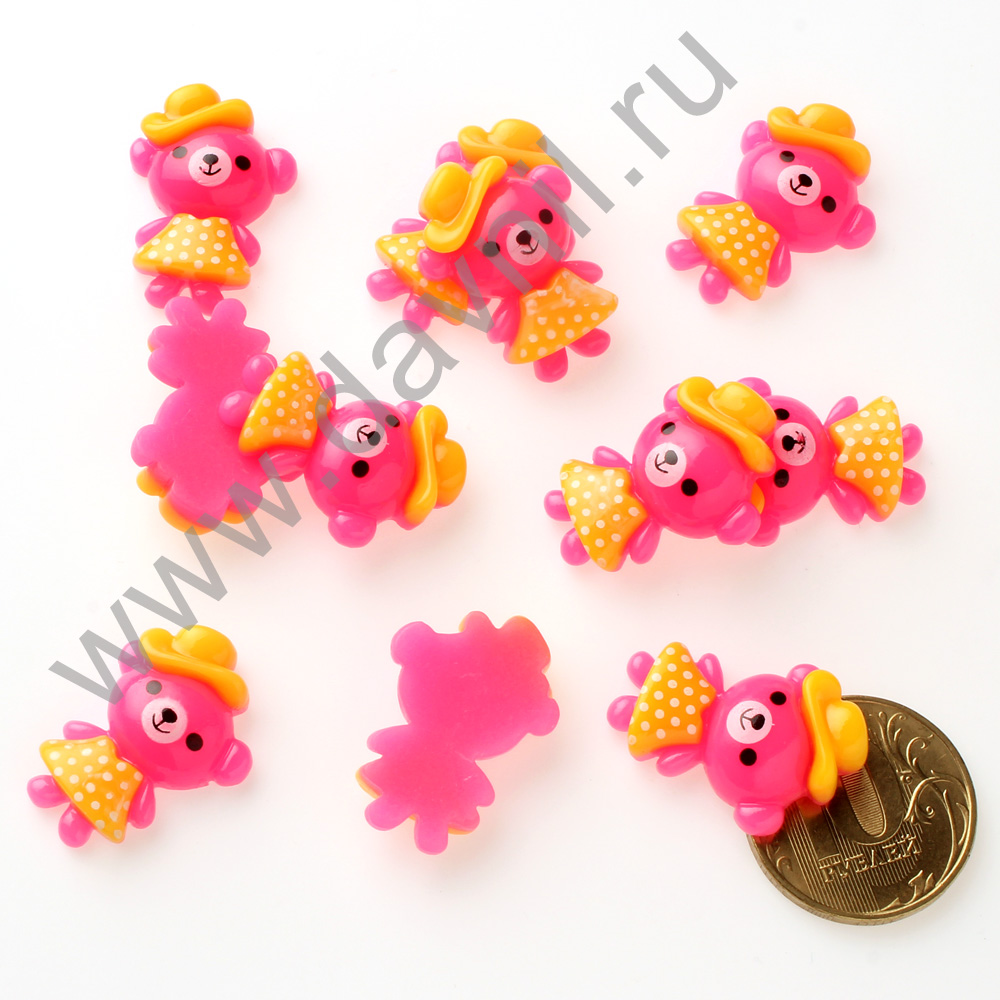 Кабошон "Клубничка" 19*15 мм без отверстия 20 шт. фуксия