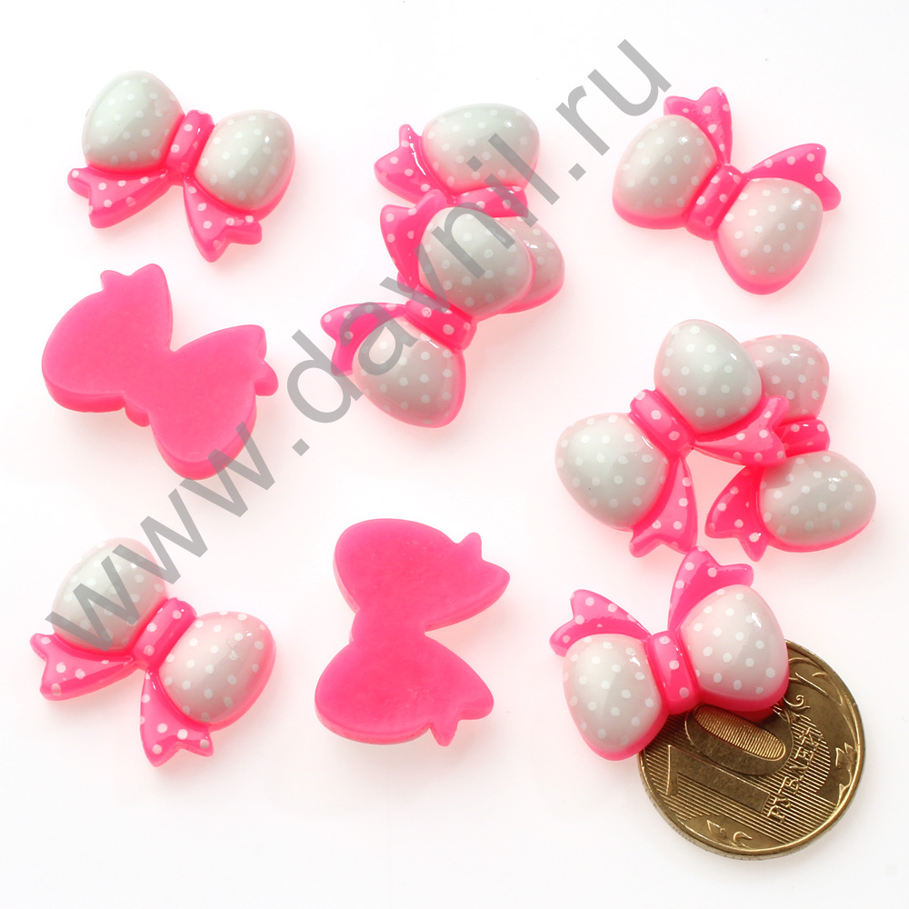 Кабошон "Бантик" 17*22 мм 20 шт. фуксия с белым