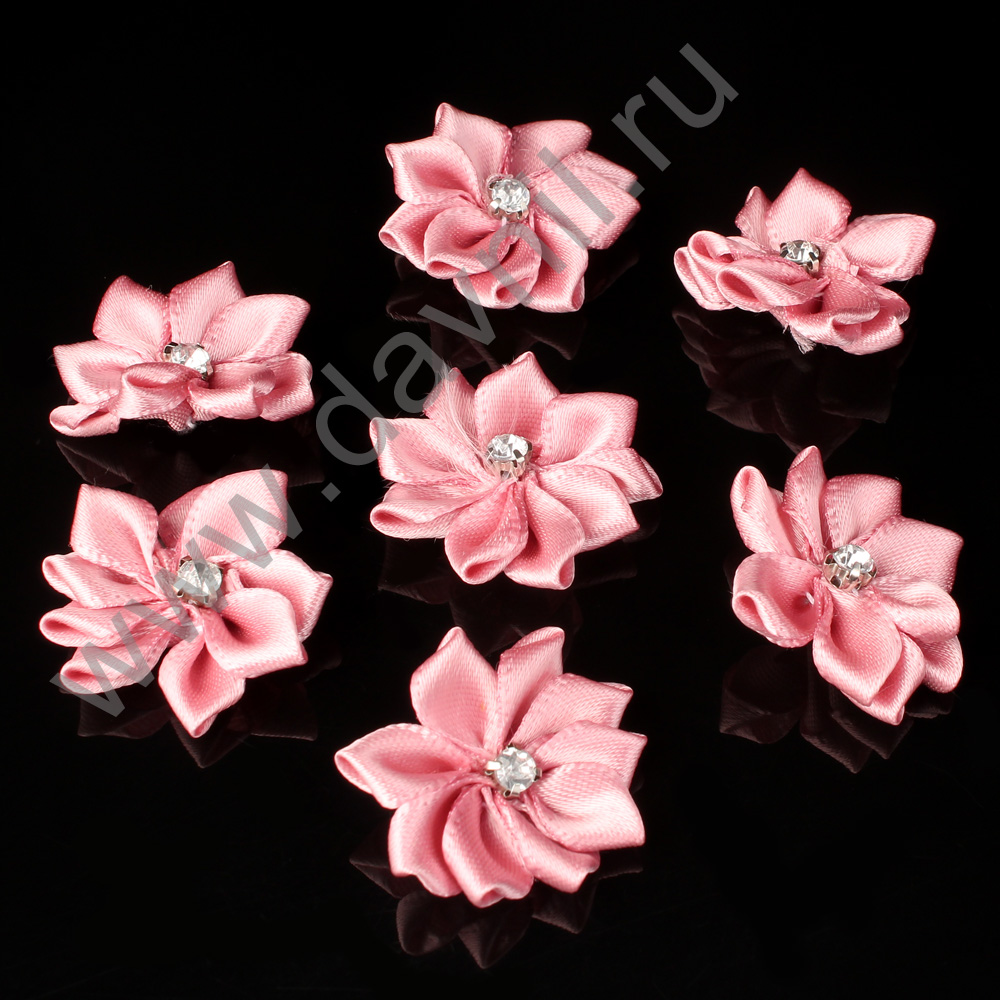 тканевые цветочки, материалы для творчества, атласные цветочки, товары для рукоделия.
