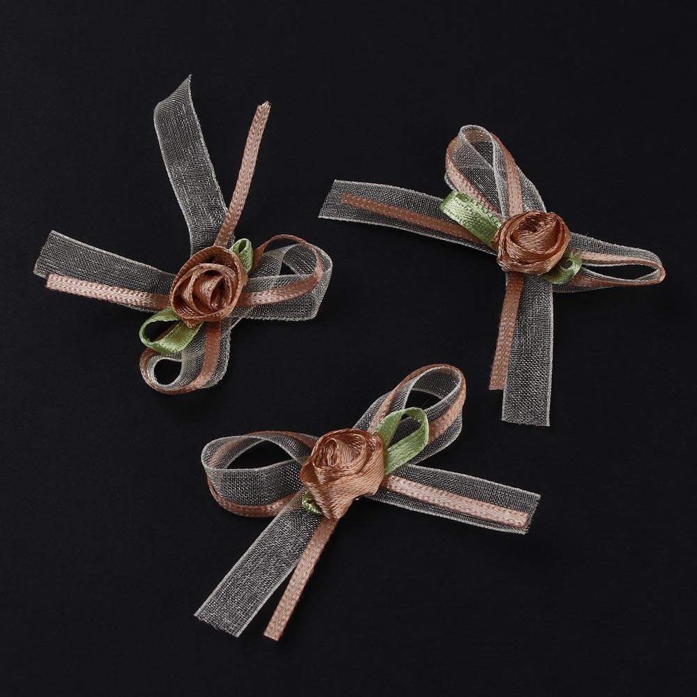 Розочка из ленты с бантиком из органзы 50 шт песочные