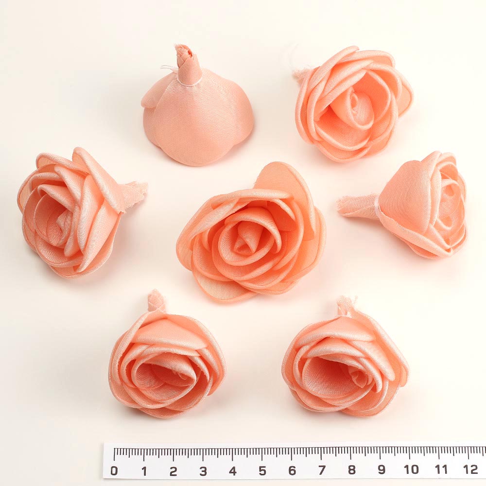 Цветочки атласные бутон розы тафта 4 см 100 шт персик