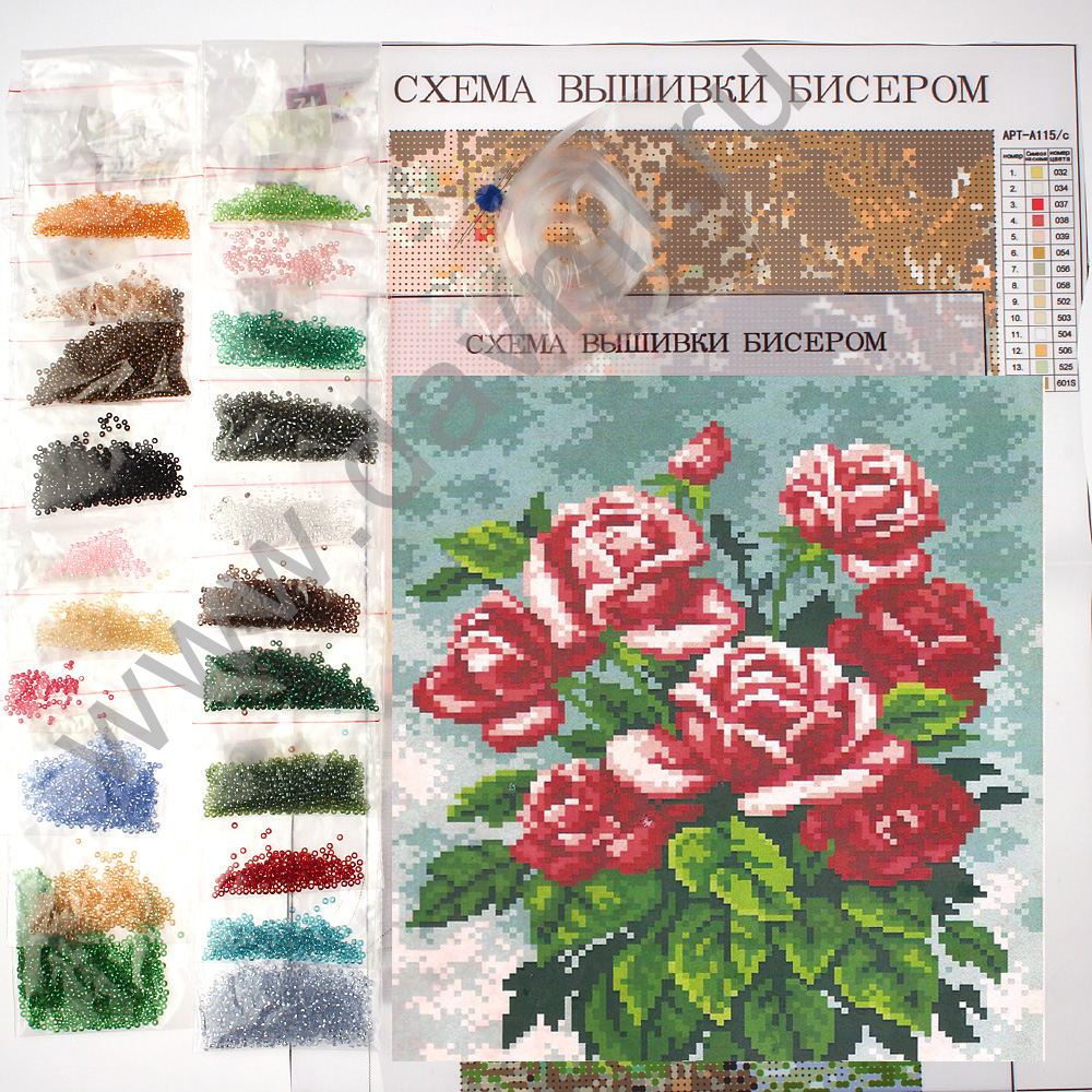 Набор для вышивания бисером 21*30 см. Букет красных роз