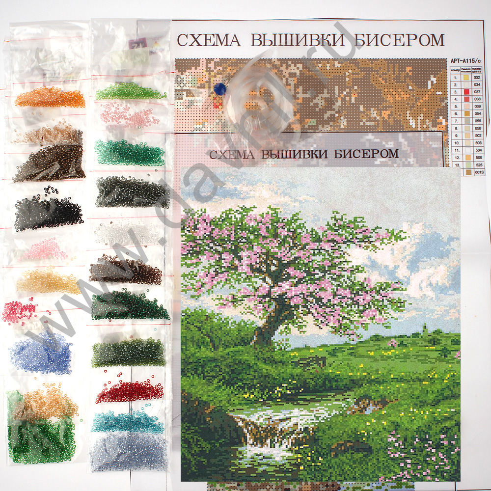Набор для вышивания бисером 21*30 см. Цветущее дерево у ручейка