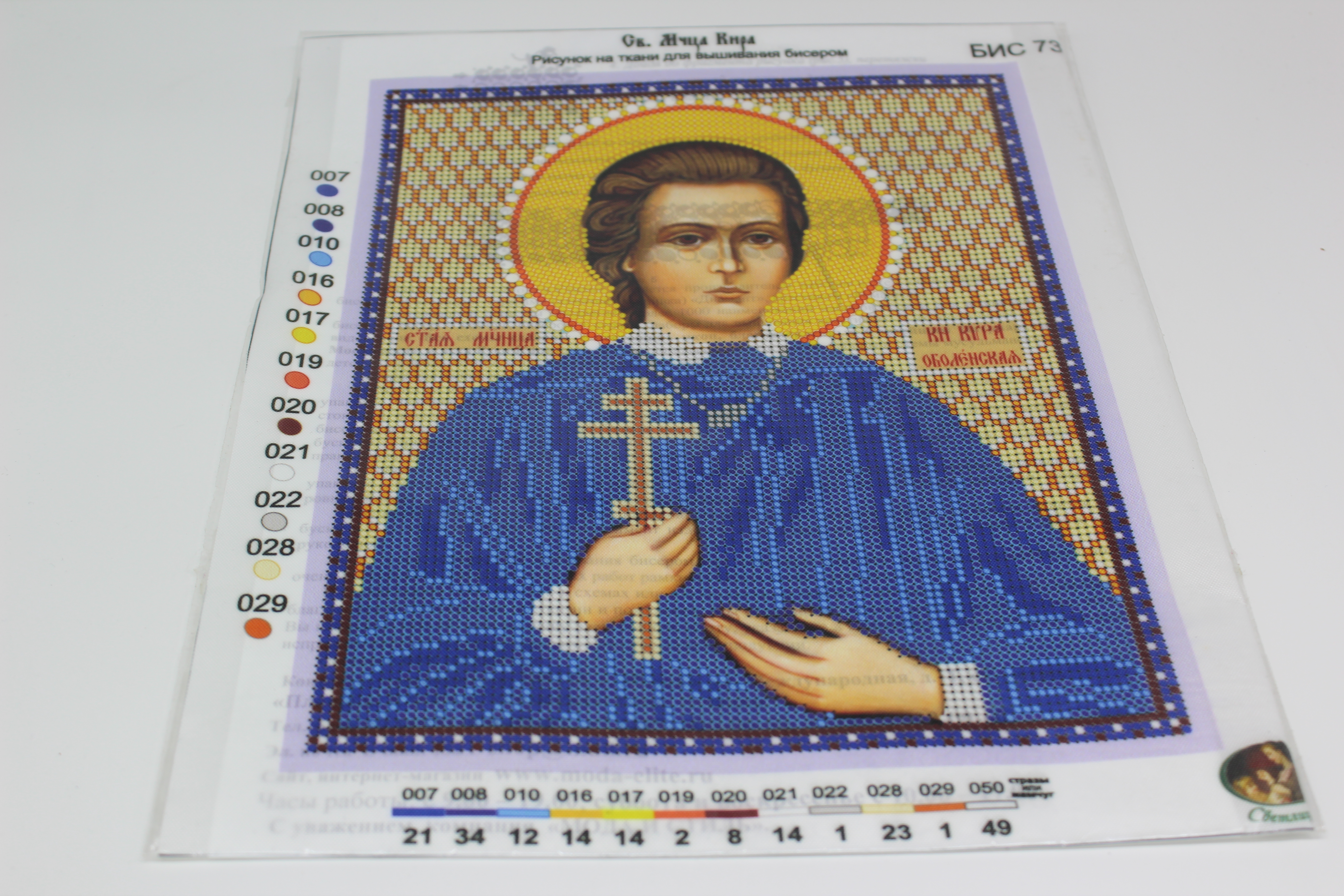 Рисунок на ткани для вышивания бисером Св.Мчца Кира 20*25 см