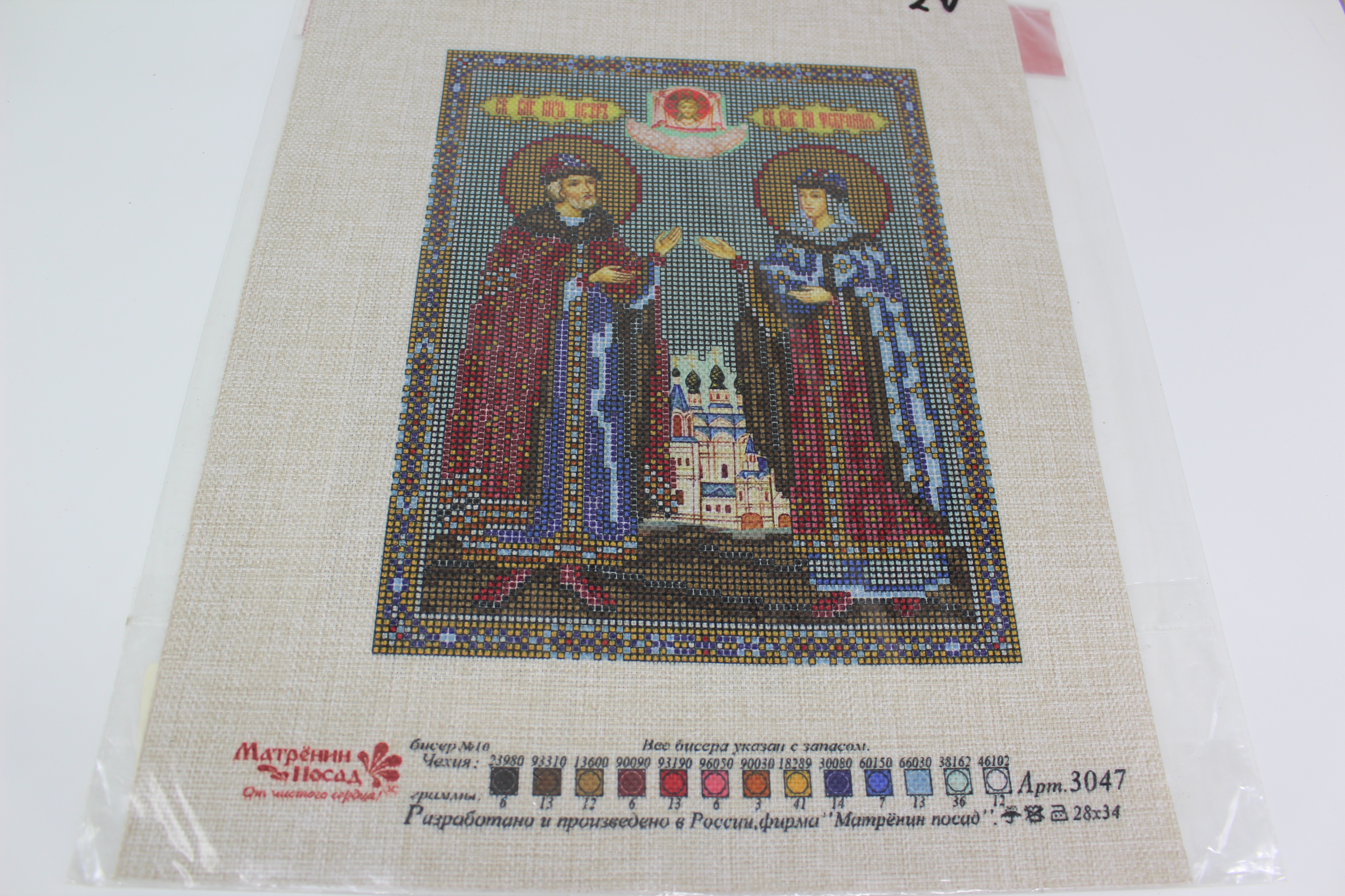 Рисунок на гобелене для вышивания бисером Петр и Февронья 28*34 см