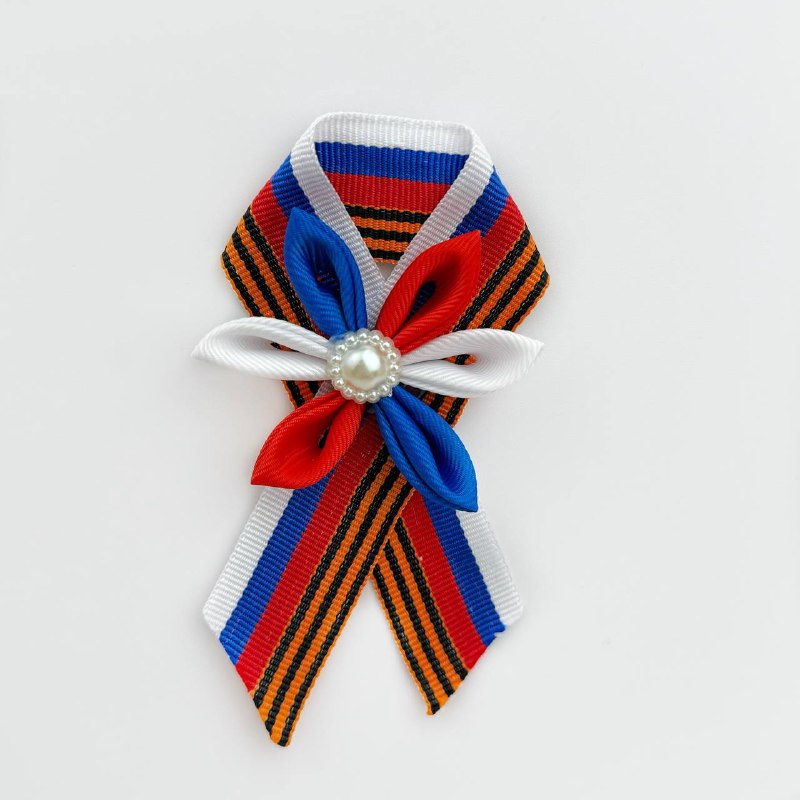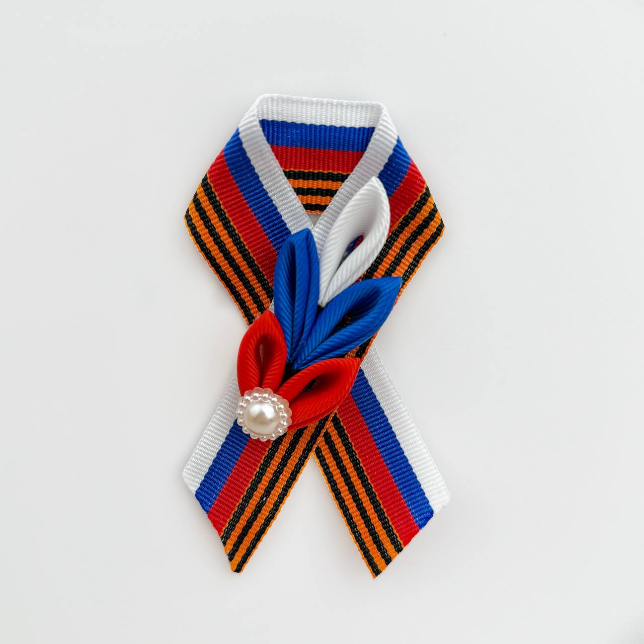 Брошь "День Победы" Георгиевская,триколор с цветком
